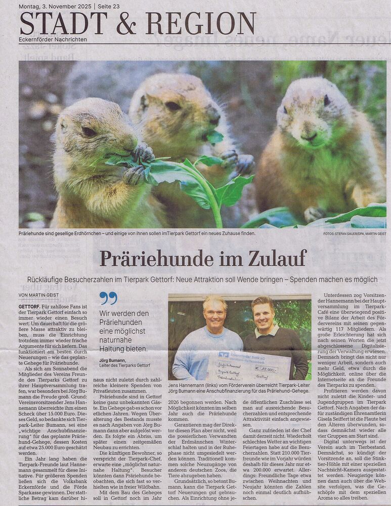 Am 3. November haben die Kieler Nachrichten über unser Spendenprojekt "Präriehundgehege" berichtet.